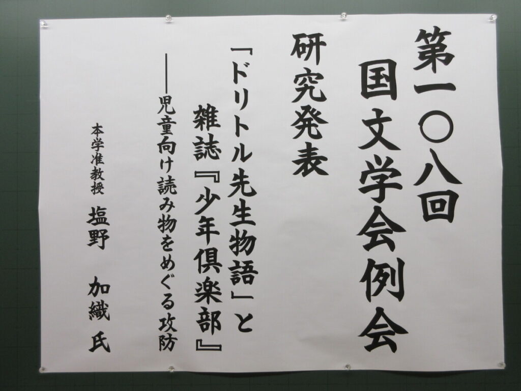 今年最後の国文学会行事、国文学会例会が12月16日(火)13時~おこなわれました。
