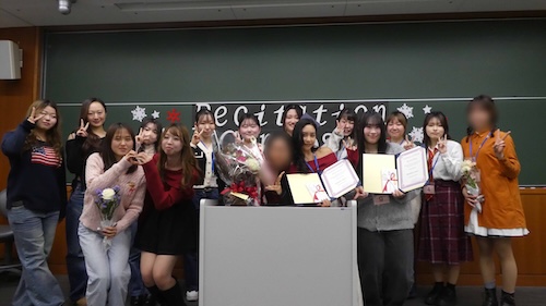 今年度は出場者10名が、学科の先生たちの発音指導を受けながら1か月の練習を重ねてきた成果を発表してくださいました。今年賞を勝ち取ったのは、こちらの皆さんです。